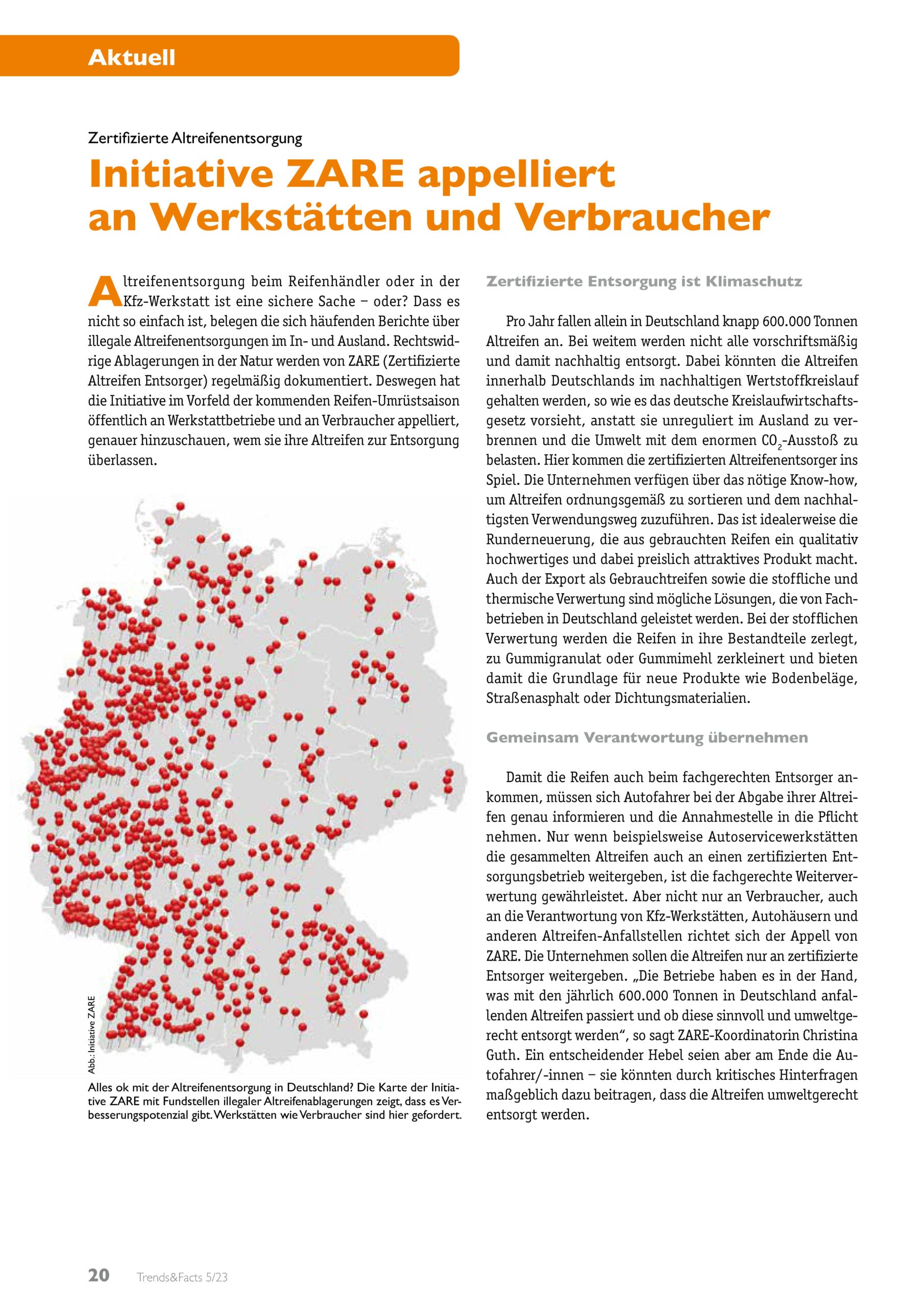 Trends&Facts beleuchtet die aktuelle Thematik der Altreifenentsorgung, appelliert an Werkstätten und Verbraucher, Verantwortung zu übernehmen und hebt die Bedeutung zertifizierter Entsorgungsfachbetriebe hervor.
